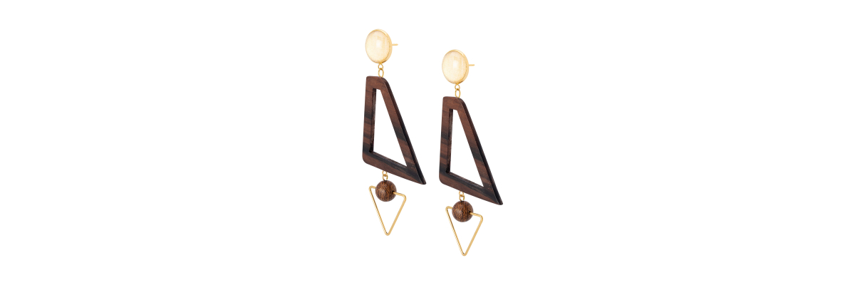 Pendientes Melissa con ébano y cristal de bohemia pintado a mano. -Peso 4,5 g -Longitud 9 cm -Metal: acero bañado en oro -Marrón -Al ser materiales naturales y estar trabajados a mano, pueden variar ligeramente en tamaño, forma y color.