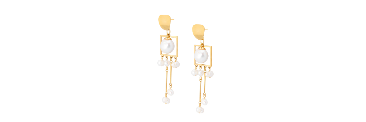 • Oia assymetric earrings with freshwater pearls.