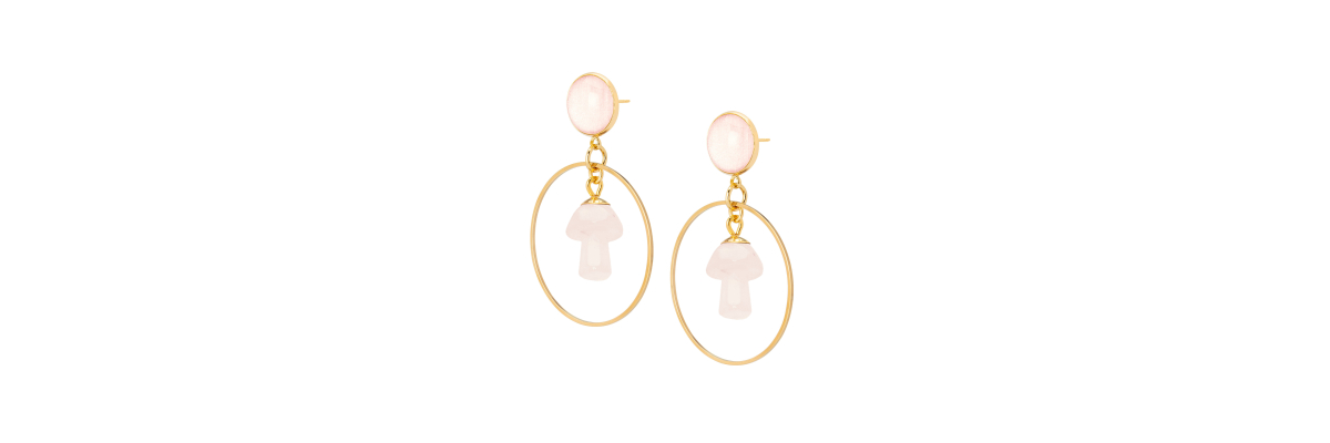Pendientes Davinia con aro y setas de cuarzo rosa. -Peso 7,5 g -Longitud 9 cm -Metal: acero bañado en oro -Rosa/dorado -Al ser materiales naturales y estar trabajados a mano, pueden variar ligeramente en tamaño, forma y color.