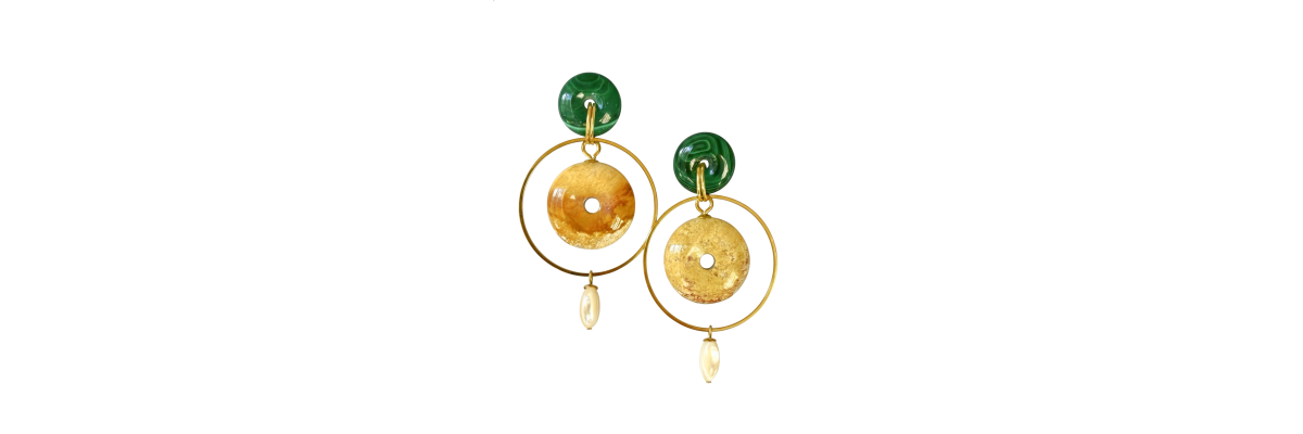 1143 PA2 earrings with malchite, mother of pearl, and fossil coral.