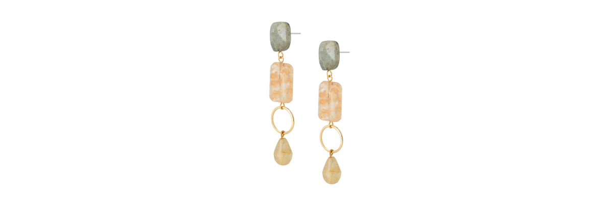• Three drop Marina earrings with labradorite and quartz.