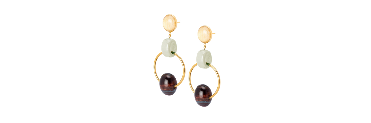 • Copernico earrings with ceramic, red tiger´s eye and a Bohemian crystal cabochon.