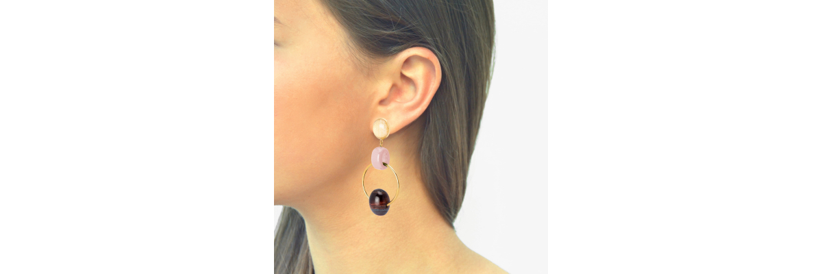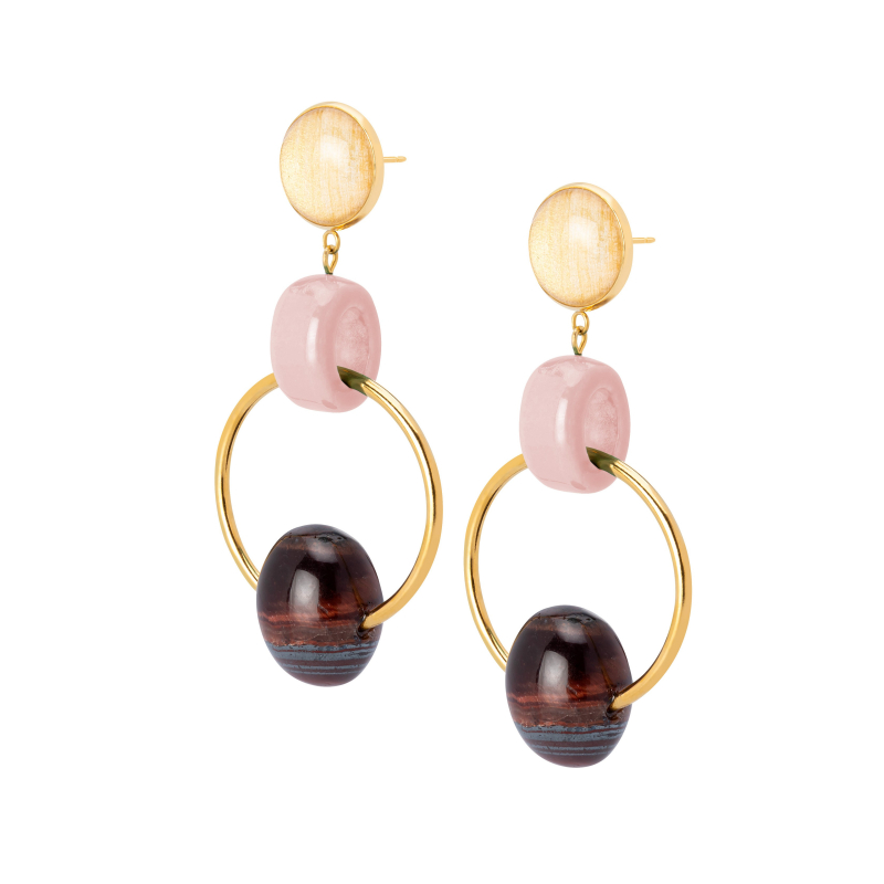 COPERNICO RED TIGER´S EYE DOORKNOCKER EARRINGS PINK