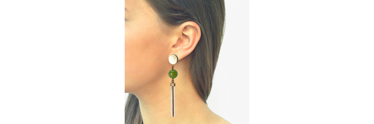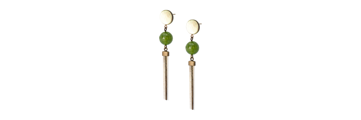 Pendientes Kimi de ágatas verdes y nácar gris. -Peso 7,5 g -Longitud 9 cm -Metal: aleación dorado viejo -Verde/gris -Al ser materiales naturales y estar trabajados a mano, pueden variar ligeramente en tamaño, forma y color.