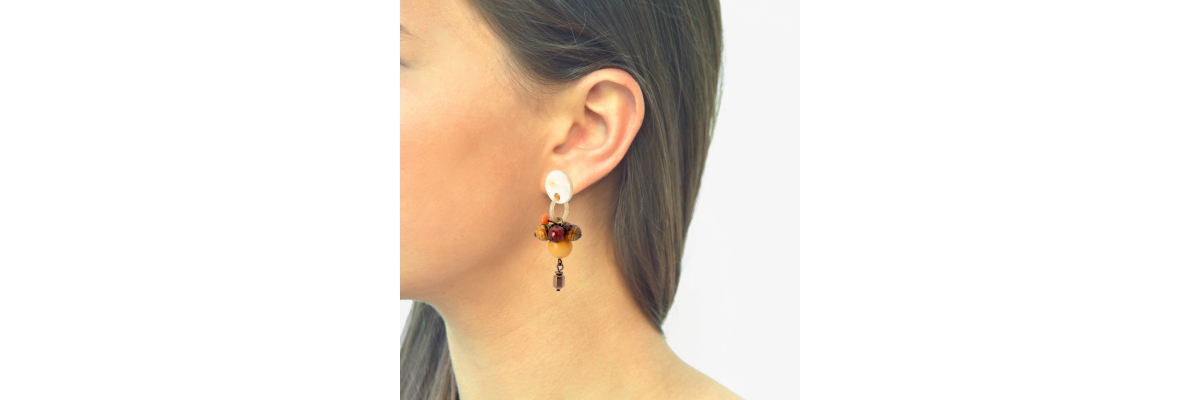 CLAUDIA BUNCH EARRINGS WITH STONES AND HORN ORANGE