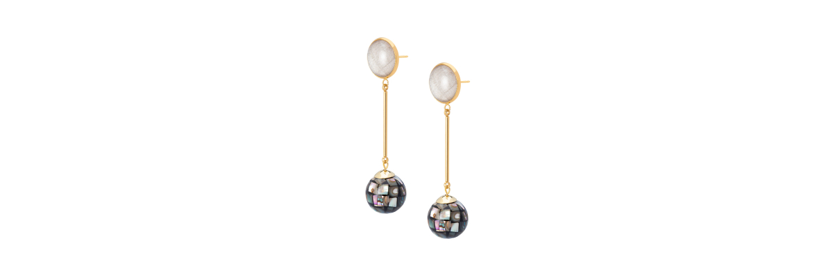 LINA EARRINGS WITH GREY MOTHER-OF-PEARL SPHERE