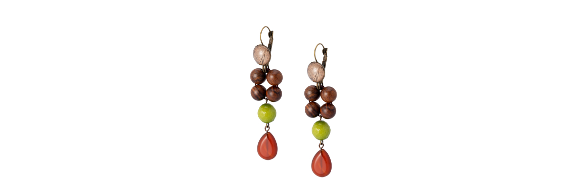 • Siena teadrop earrings with carnelian, agates, rosewood and hand-painted Bohemian crystal cabochon.