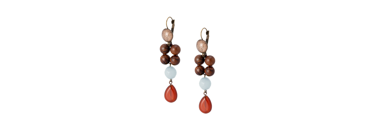 • Siena teadrop earrings with carnelian, agates, rosewood and hand-painted Bohemian crystal cabochon.