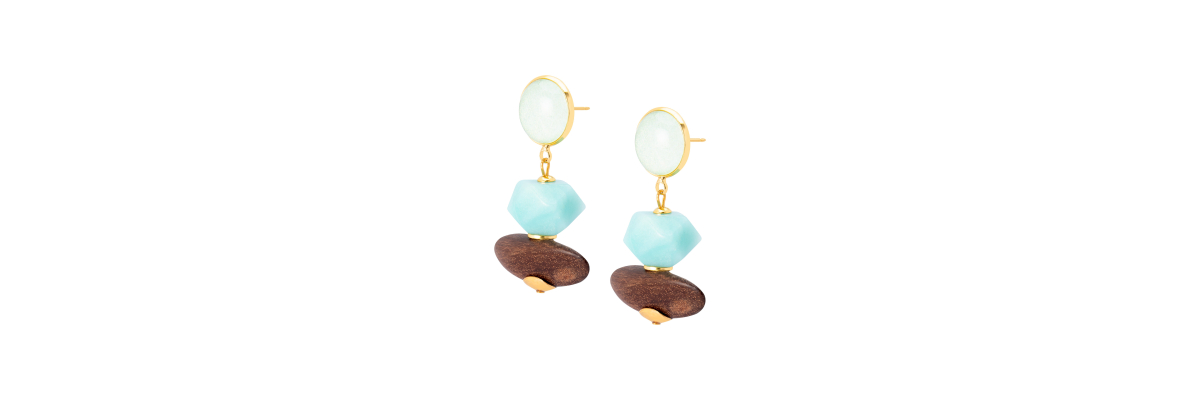 Pendientes Ava de ébano y larimar. -Peso 7 g -Longitud 4,8 cm -Metal: acero bañado en oro -Marrón/azul -Al ser materiales naturales y estar trabajados a mano, pueden variar ligeramente en tamaño, forma y color.