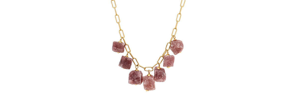 Collar Malisa corto con piedras en bruto de cuarzo color rosa y madera de ébano -Peso 150 g -Longitud 26 cm -Metal: acero bañado en oro -Al ser materiales naturales y estar trabajados a mano, pueden variar ligeramente en tamaño, forma y color.