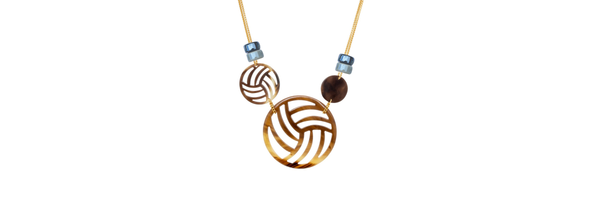 • Copernico necklace with horn piece in two sizes, iron eye and ceramic.