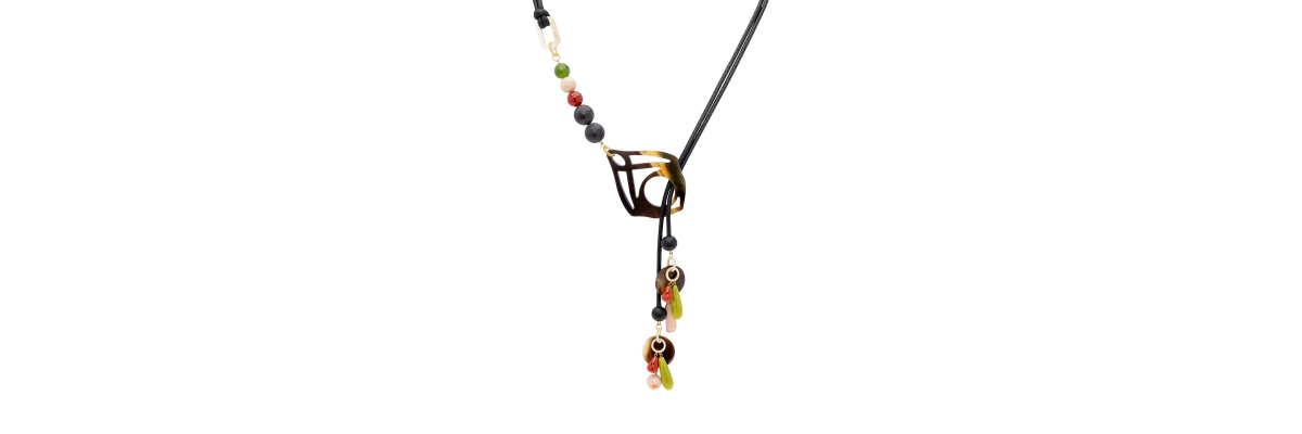 • Atria short Y-shaped necklace with matte onyx, carnelian, jade, agate, enamel and horn.