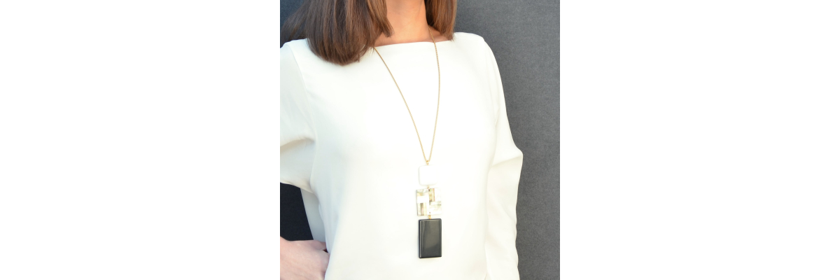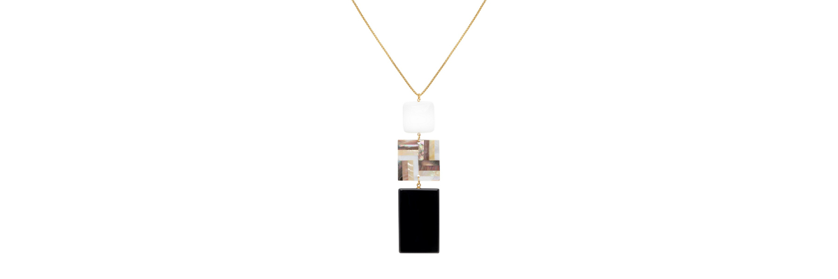 • Lina necklace with onyx, white jade and mother-of-pearl mosaic patern.