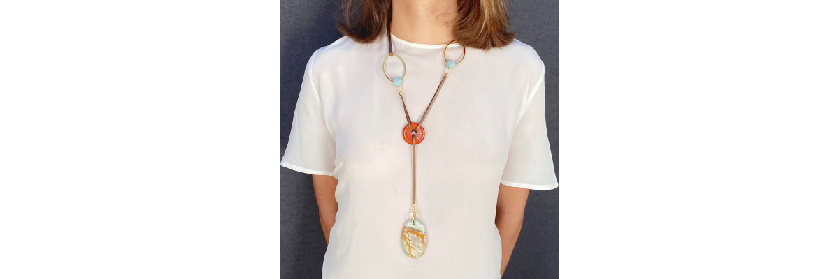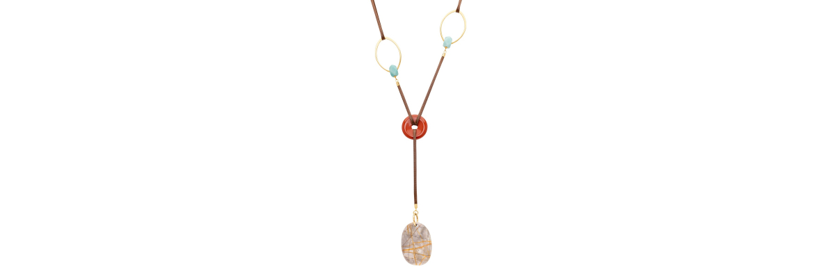 • Ava Y-shaped necklace with like red jasper, picasso jasper and larimar.