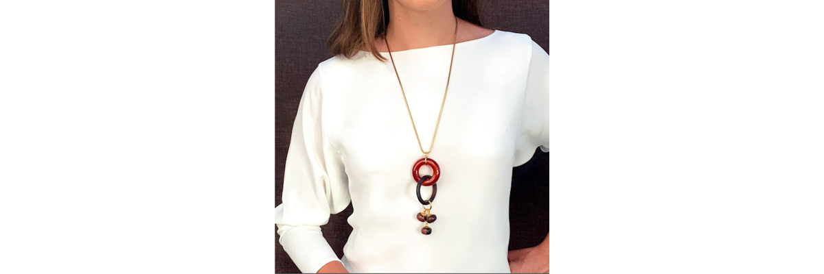 • Erin necklace with giant ebony and giant cornelian loops.
