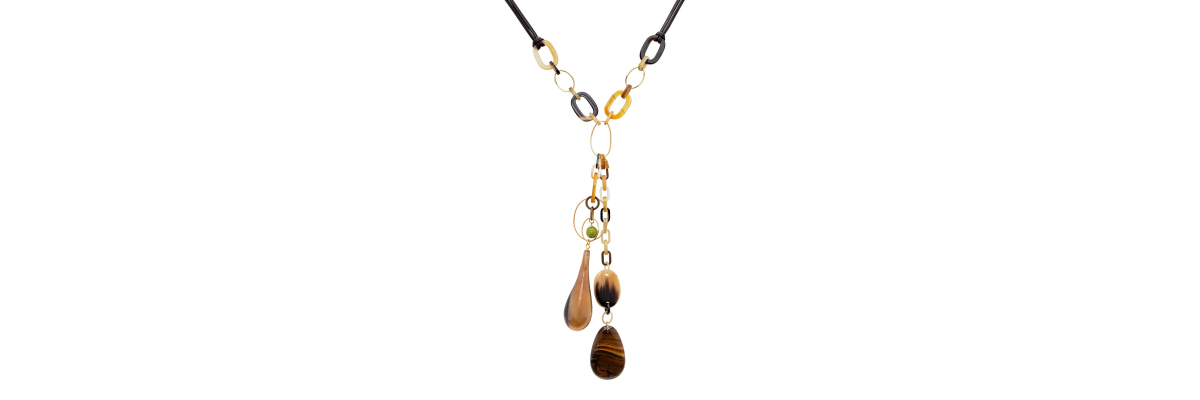 • Ayako Y-shaped necklace with buffalo horn, agate and tiger's eye.