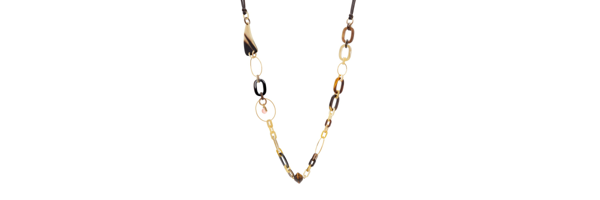 • Ayako long necklace with buffalo horn, agate and tiger's eye.