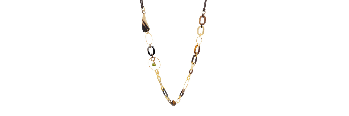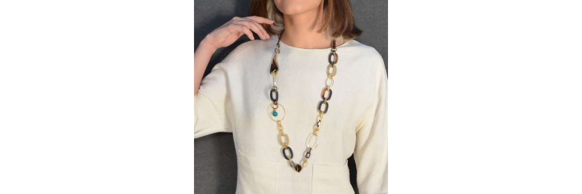 • Ayako long necklace with buffalo horn, agate and tiger's eye.