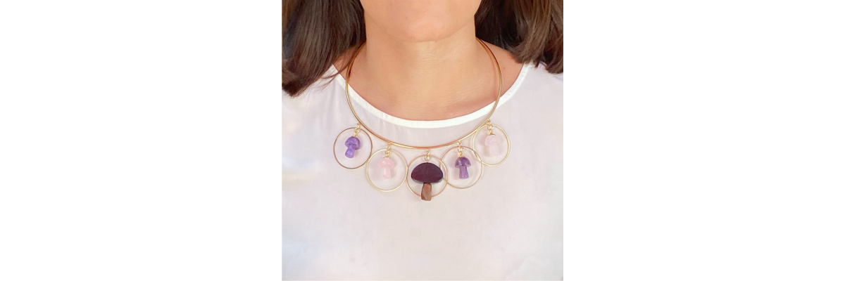 DAVINIA MUSHROOMS COLLAR NECKLACE PURPLE PINK