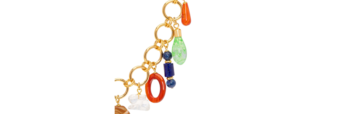 • Valentina charm long necklace with tiger's eye, agates, quartz, lapis,cornelian, jade,landscape jasper, turmaline ands Murano and Swarovski crystal.