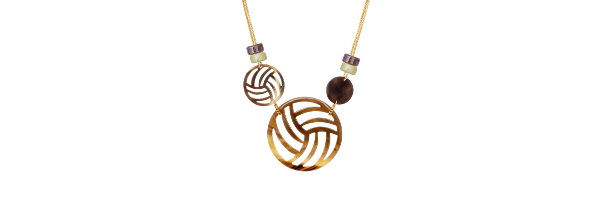 COLLAR COPÉRNICO CORTO CON CERÁMICA Y CUERNO MARRON