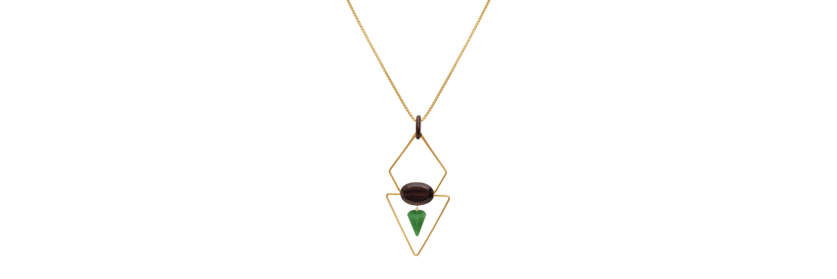Collar Melissa con ébano, y pirámides de jade. -Peso 70 g -Longitud 20-50 cm -Metal: acero bañado en oro -Verde -Al ser materiales naturales y estar trabajados a mano, pueden variar ligeramente en tamaño, forma y color.