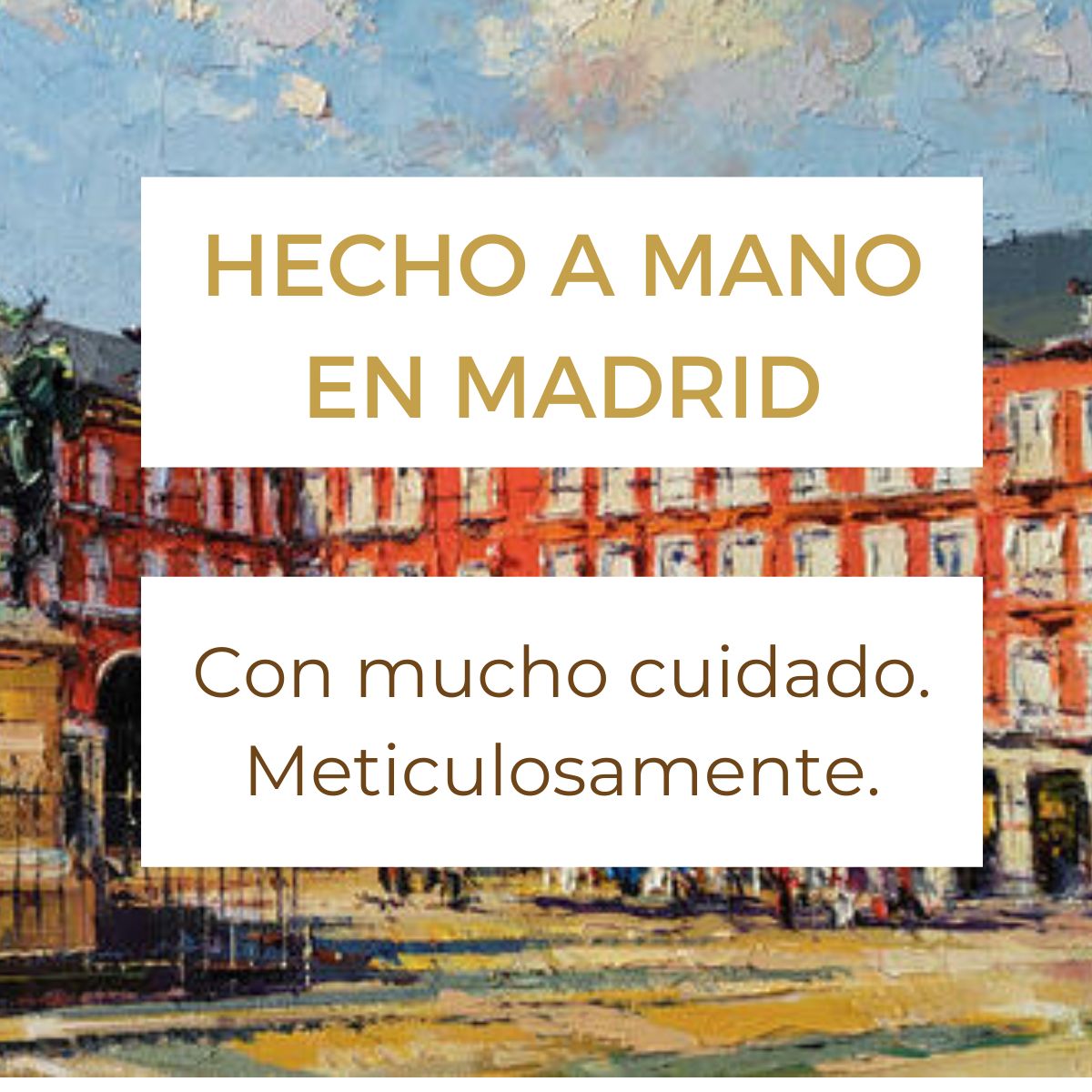 Todas y cada una de las piezas están hechas a mano en nuestro taller de Madrid por artesanos muy capacitados que usan diferentes técnicas. Como resultado, las colecciones son muy distintas unas de otras, cada una con su propia personalidad, manteniendo siempre unos acabados impecables.