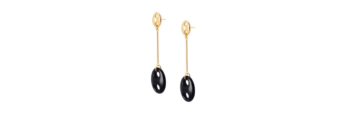 Pendientes Pacífico largos con calabrotes de ónix. -Peso 5 g -Longitud 7 cm -Metal: acero bañado en oro -Negro -Al ser materiales naturales y estar trabajados a mano, pueden variar ligeramente en tamaño, forma y color.